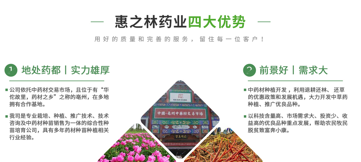 - 亳州市惠之林藥業(yè)有限公司是一家從事中藥材種苗、生產(chǎn)繁育企業(yè),現(xiàn)有育苗基地3000多畝,常年供應(yīng)藥材種苗100多種;藥材分為春、夏、秋、冬種植品種,既在種植季節(jié)我本合作社向藥農(nóng)提供中藥材種子和技術(shù)人員。藥材收獲從相應(yīng)產(chǎn)地收購(gòu)藥材,再加工投入市場(chǎng)同時(shí)也隨市場(chǎng)變動(dòng)不斷更新種子、藥材,力求讓種植戶(hù)得到利潤(rùn)。本合作社將秉承“誠(chéng)信、和諧、保質(zhì)、服務(wù)的企業(yè)理念”,堅(jiān)持以市場(chǎng)為導(dǎo)向,以現(xiàn)代化管理為基礎(chǔ),以全新的經(jīng)...